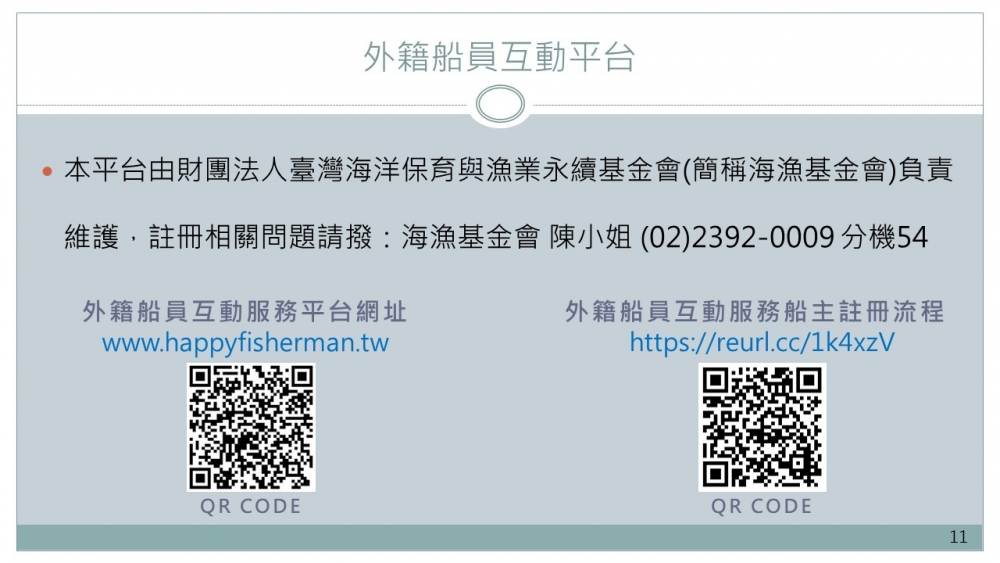 其餘問題請撥:海漁基金會 楊小姐 (02)2469-8185分機 24