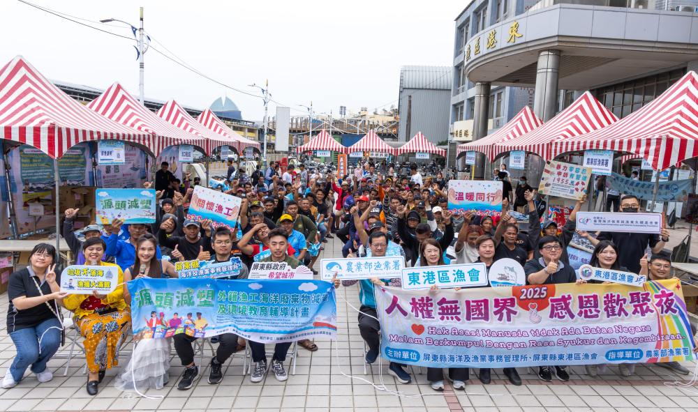 農業部漁業署於114年10月至12月於八斗子漁港、新竹漁港、南方澳漁港、深澳漁港、梧棲漁港、大溪漁港、大福漁港、東港漁港、前鎮漁港等9個重點漁港舉辦「源頭減塑-外籍漁工海洋廢棄物減量暨園遊會」,邀集在台外籍漁工及各界貴賓共同參與,以寓教於樂的方式推廣垃圾分類、減廢行動與正確漁具管理,實踐守護海洋的永續行動。